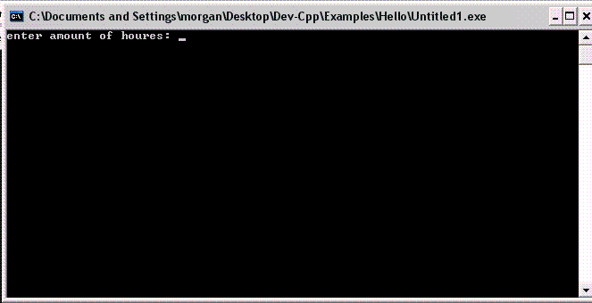 cout << "enter amount of hours: "; //cout means "see output" so what youl c in th box